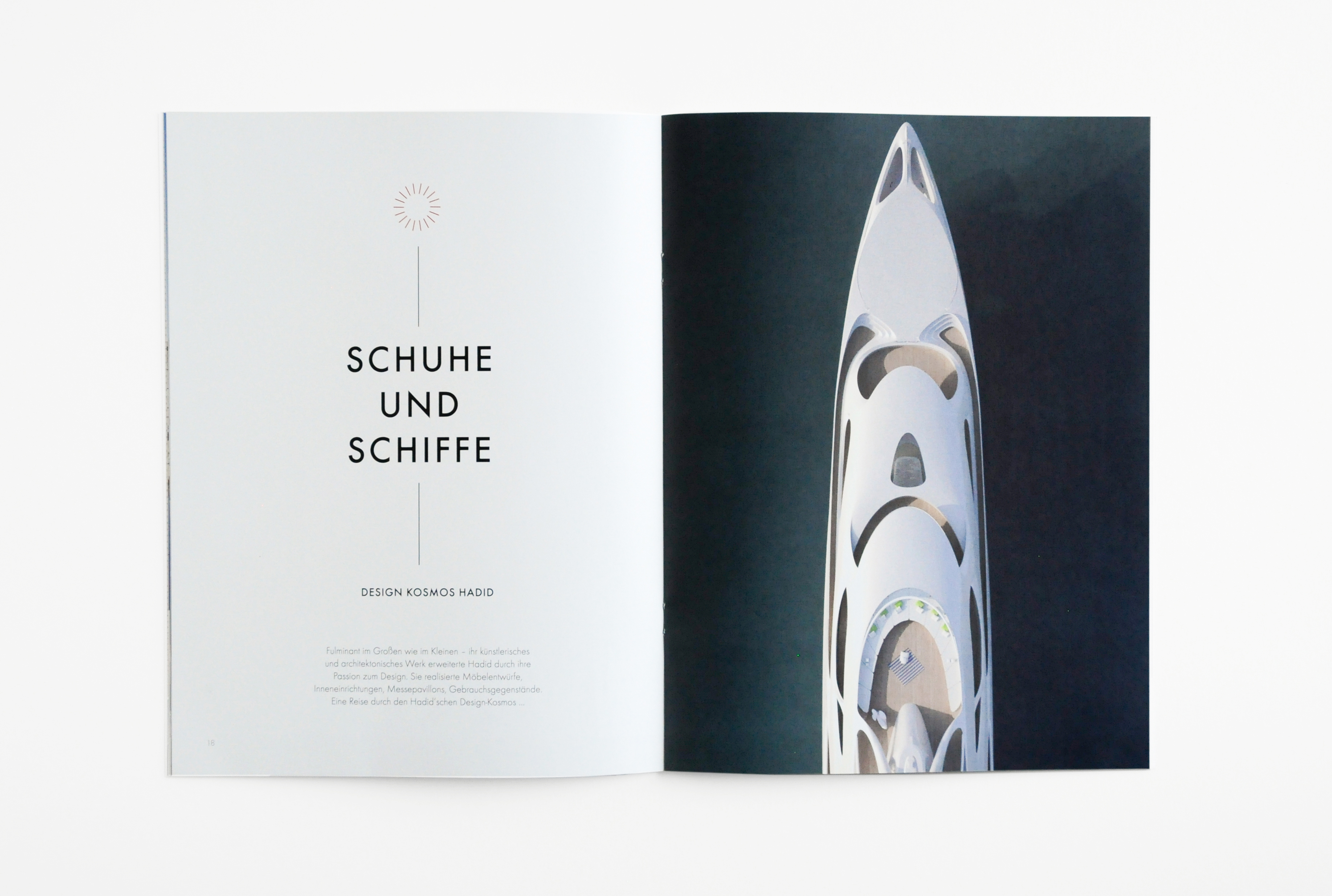 Das Erscheinungsbild setzt auf großzügige Bildsprache, klar strukturierte Typografie und viel Weißraum.
