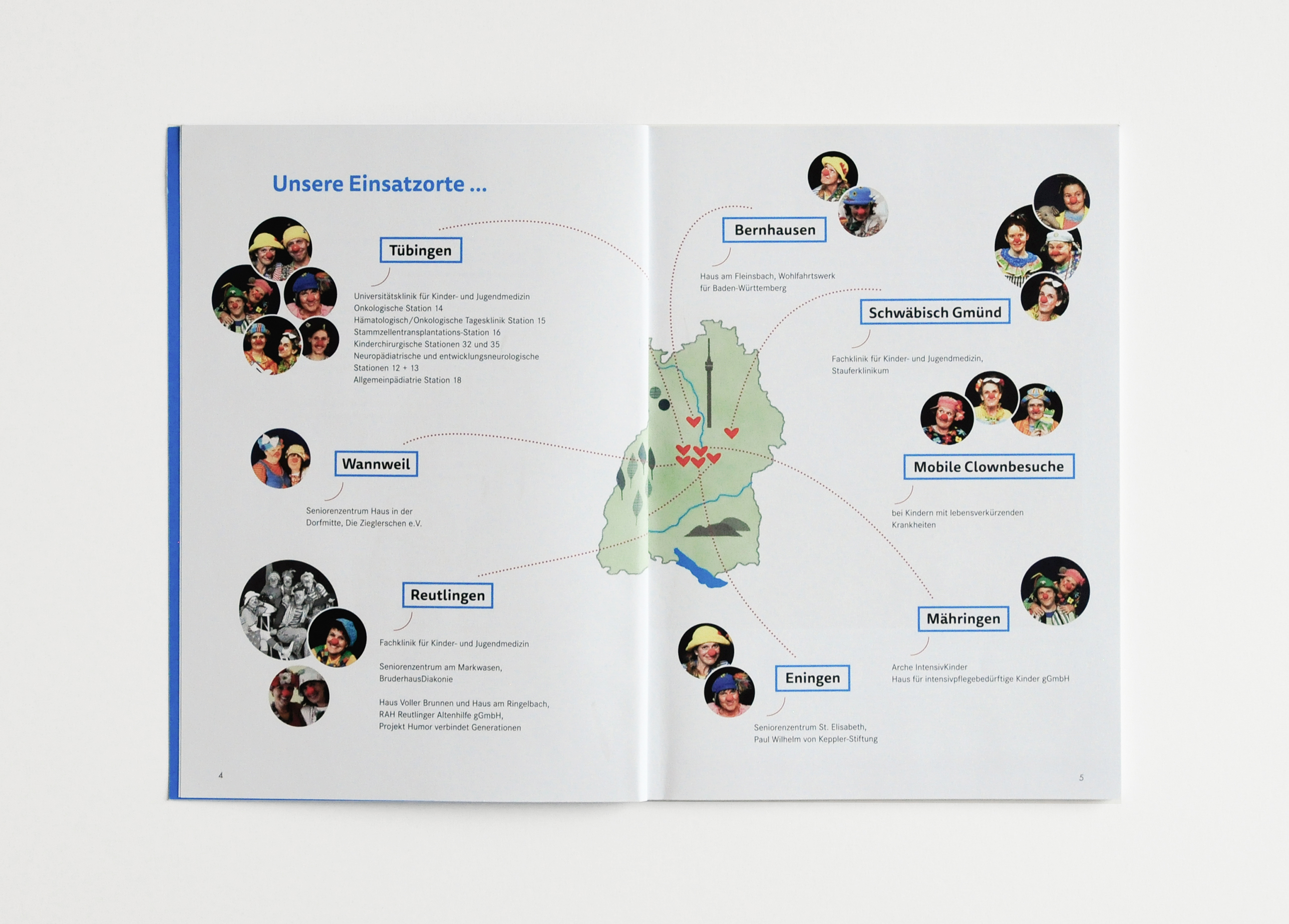 Die Tübinger Clowns im Dienst sind wöchentlich unterwegs in Kinderkliniken, geriatrischen Stationen und Pflegeheimen. Mit feinem Gespür, Humor und Herz schaffen sie Momente der Leichtigkeit, Zuversicht und Freude – und helfen damit, Ängste abzubauen, Lebensmut zu stärken und den Klinik- und Heimalltag ein wenig heller zu machen.