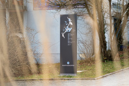 Ausgehend von einem historischen Stuckemblem im Giebel eines Bestandsgebäudes entstand das „M im blauen Polygon“ – als zentrale Bildmarke im neuen visuellen Erscheinungsbild und wiederkehrendes Orientierungselement.